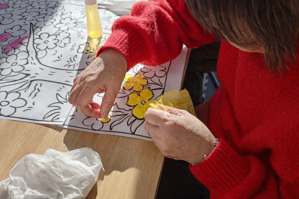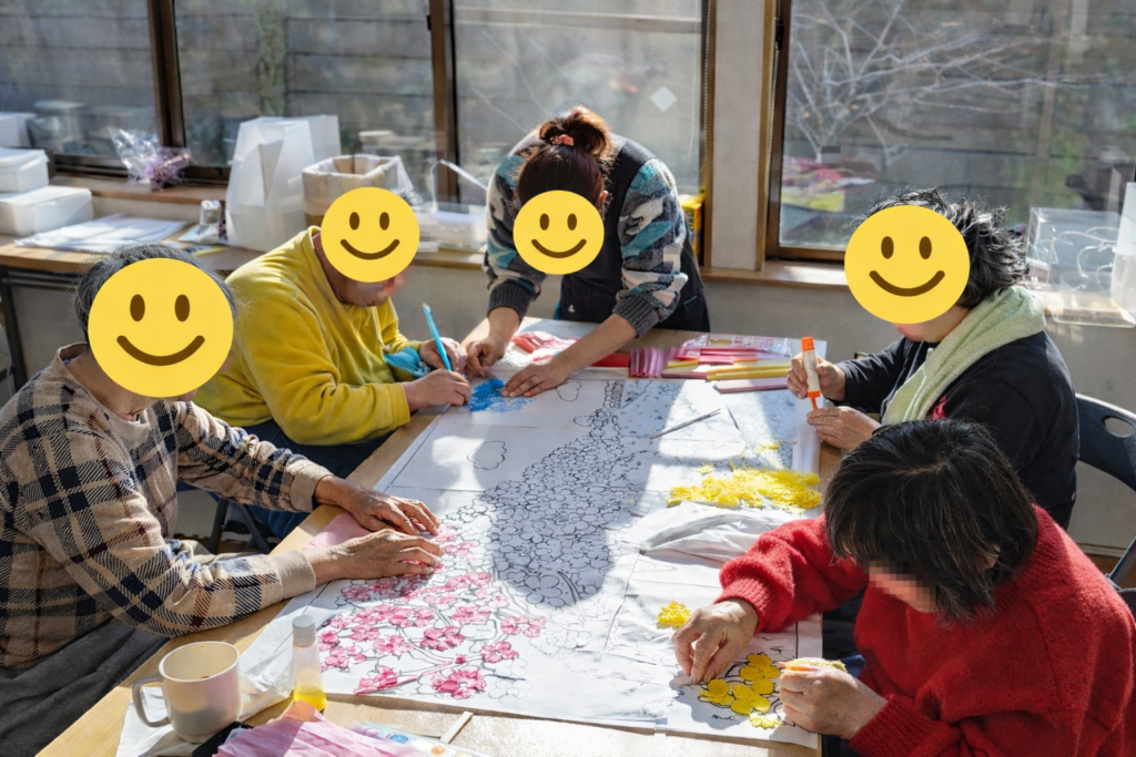 この活動では、一度で仕上げることを目的とせず、日々の活動の中で少しずつ手を加えながら、みんなで一つの作品を作り上げています。
