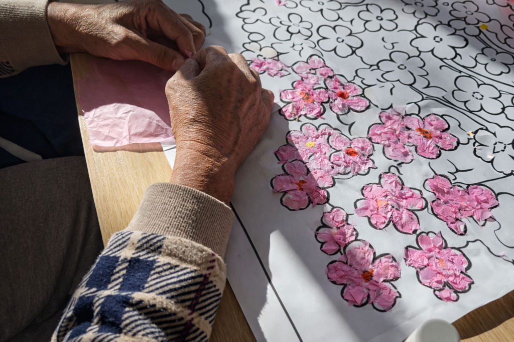 現在、「3たす」では、ちぎり絵制作に取り組んでいます。