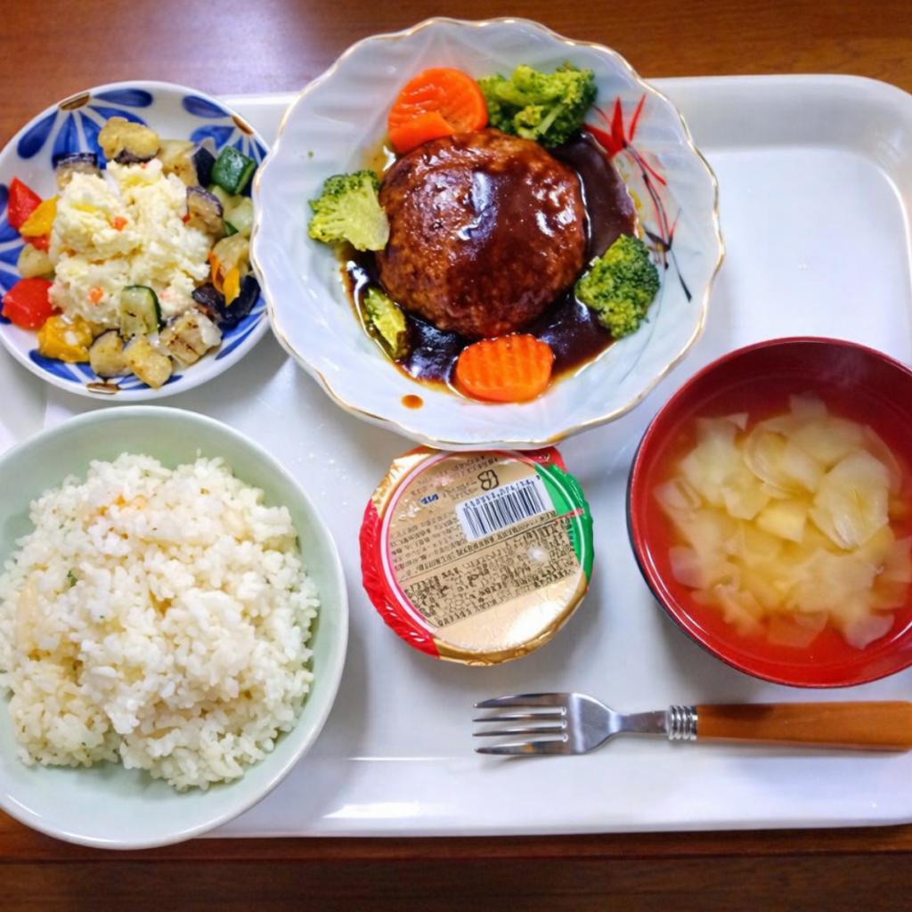 普段と違う食事内容に、利用者さんも落ち着いた様子で食事を楽しまれていました。